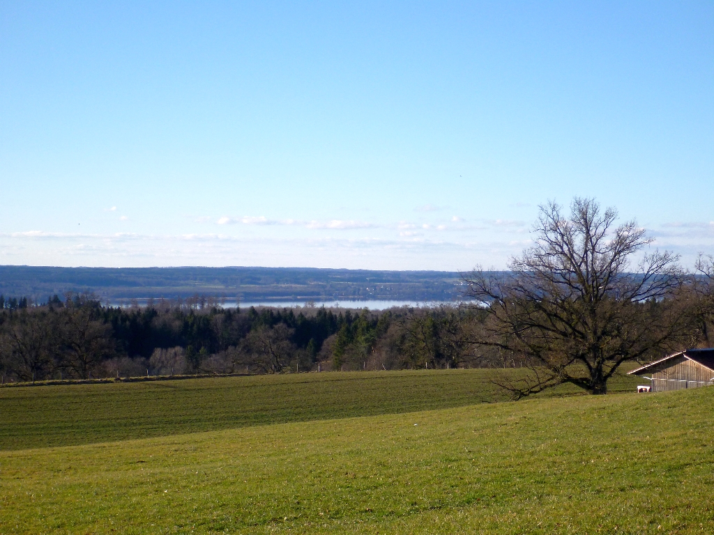 Blick auf den Ammersee auf dem Weg zwischen Andechs und Pähl