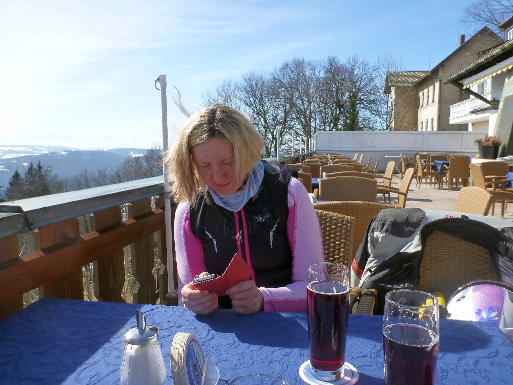 Angelika läßt ihren Arbeitskollegen an der schönen Aussicht teilhaben.