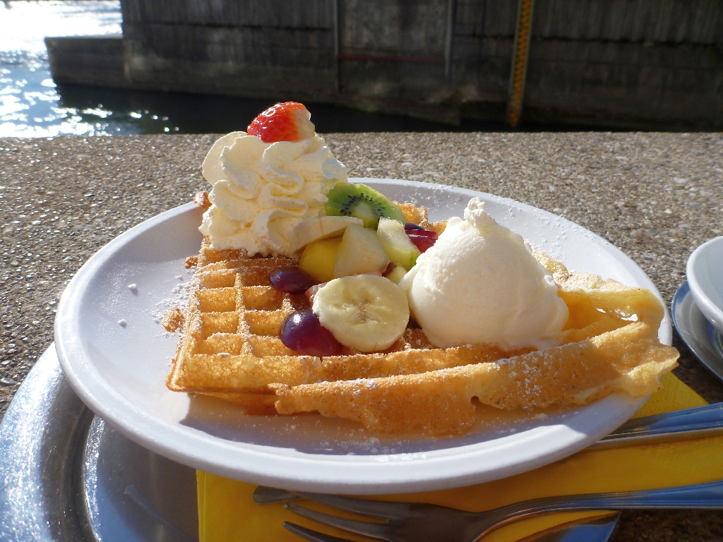 Gesunde Waffel, da mit Obstsalat!